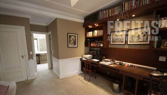 4 suites, sendo máster com sala íntima que pode ser configurada como um quinto dormitório. Todas com closets e 3 já com condicionamento de ar tipo split