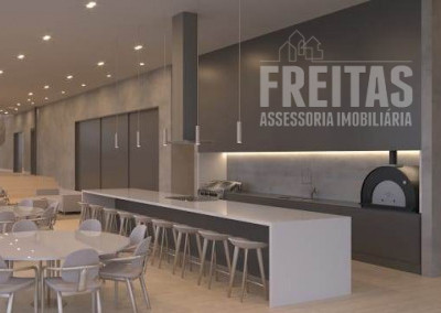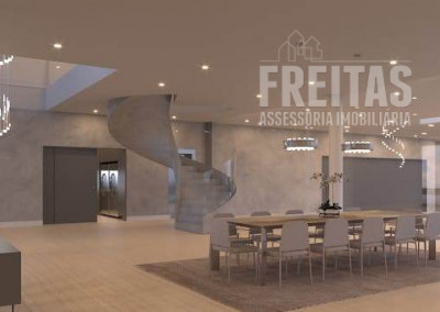 Possui um amplo pé direito duplo, adega integrado com bar, além de espaços
