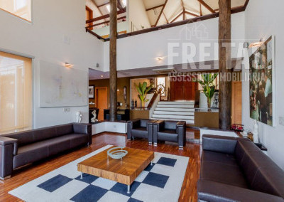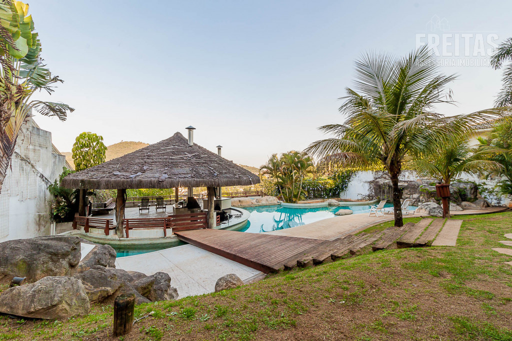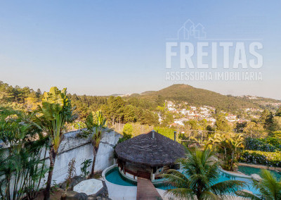 Com uma vista rara, de frente para uma montanha, mais de 2.300 m² de terreno e aprox. 1600 m² de área construída essa casa é única... com estação para tratamento de 100% dos seus efluentes líquidos e sistema de geração fotovoltaico que gera a eletricidade que a casa consome, essa mansão de 5 suítes com acomodação para caseiros (2 quartos, banheiro e lavanderia) tem seu próprio pomar com 18 variedades de frutas (abacate, manga, caqui, tangerina selvagem, limão cravo, limão tahiti, romã, carambola, goiaba, maracujá doce, banana, pitanga, acerola, ameixa, mamão, cana de açúcar, uva e amora) e horta de chás e temperos juntos numa área de 450 m².