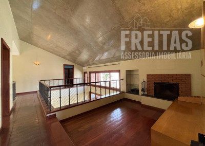 Sala de estar, jantar e lareira