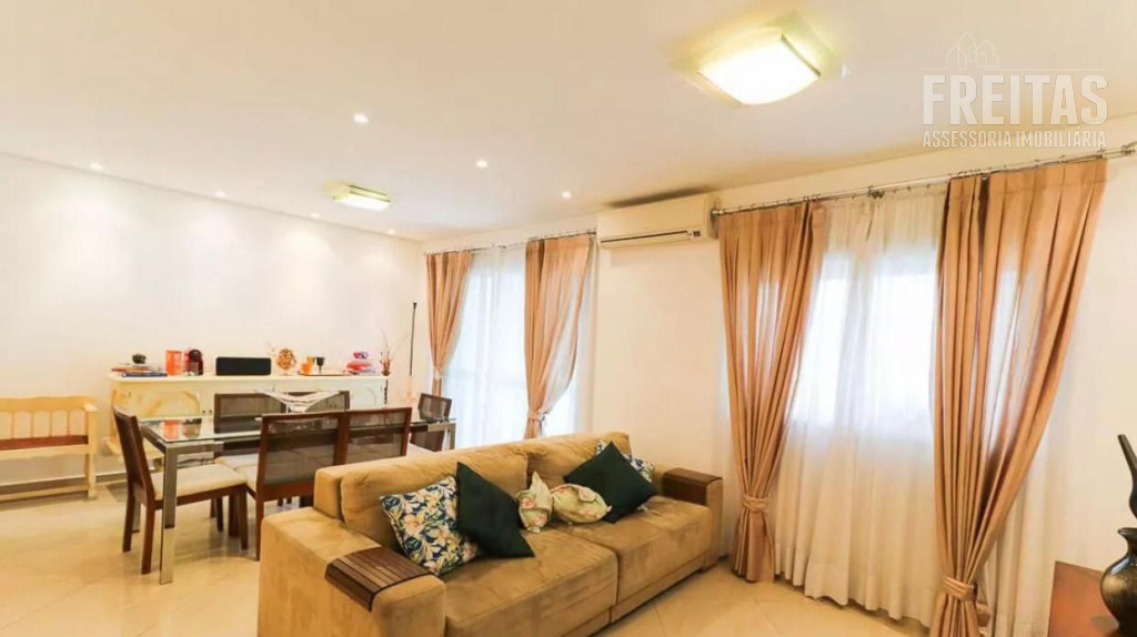 Semi mobiliado com itens essenciais, incluindo sofás, mesa de jantar e camas