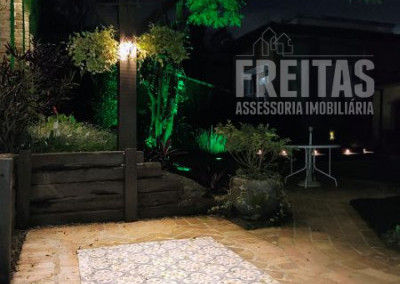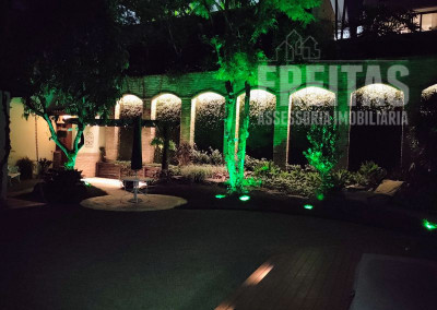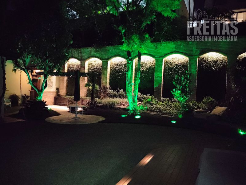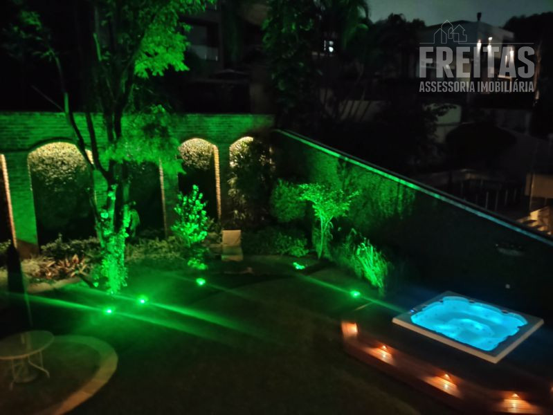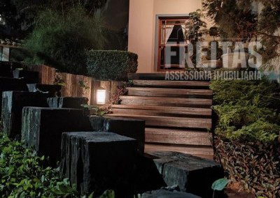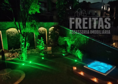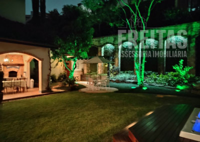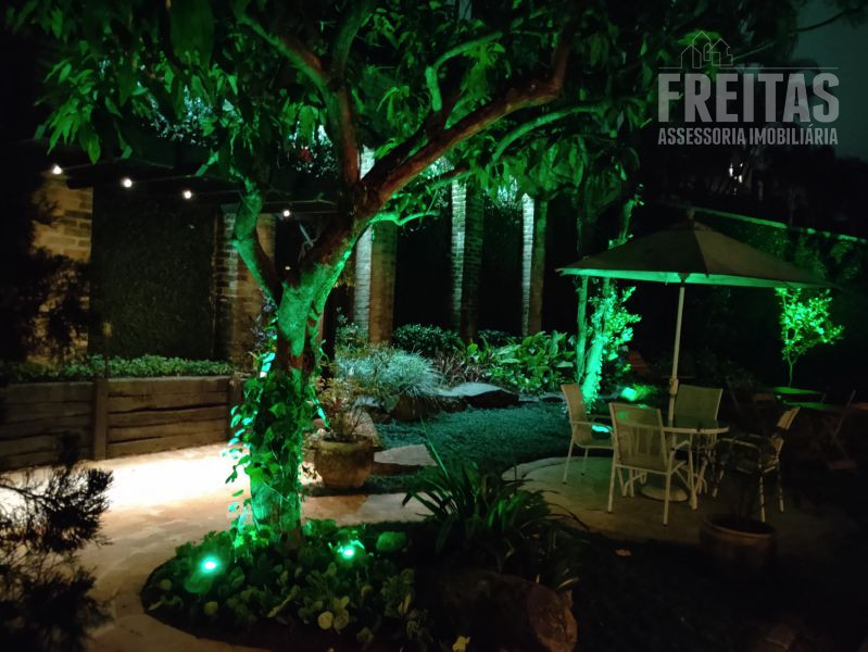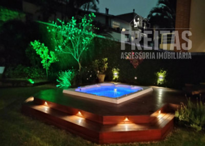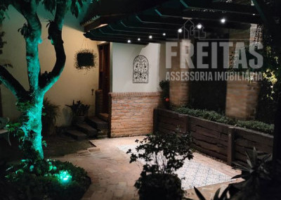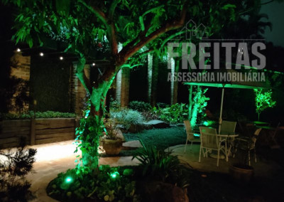 O quintal é o ponto alto da casa, um perfeito lugar de encantamento para todos que a visitam. Com varanda ampla, lindo gramado, jacuzzi, paredes cobertas de hera e árvores carregadas de orquídeas.