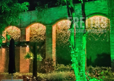 São 400m² de área construída em um terreno de 540m², composto de 4 quartos (duas suítes), sala de estar com pé direito duplo, sala de jantar, copa, cozinha, área de serviço, escritório, adega, lavabo e consultório / quarto de empregada, além de um banheiro social no quintal para uso do jacuzzi. A área de churrasco oferece fácil acesso à cozinha e fica integrada em uma varanda ampla.