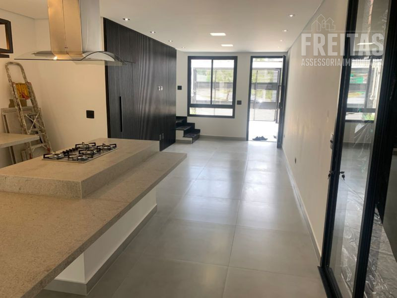 • Living integrado em conceito aberto, unindo sala de estar, cozinha e jantar com ilha central, cooktop e exaustor.