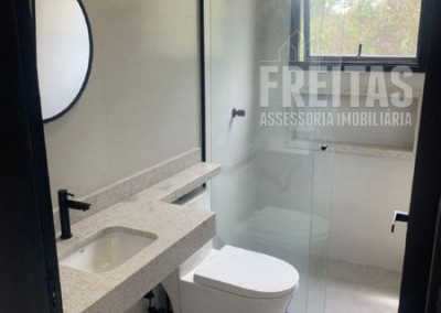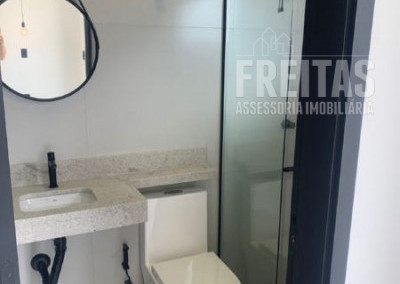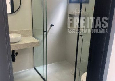 • Banheiros modernos com acabamentos de alto padrão: box em vidro temperado, nicho, chuveiros, espelhos e vasos monobloco com ducha higiênica.