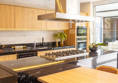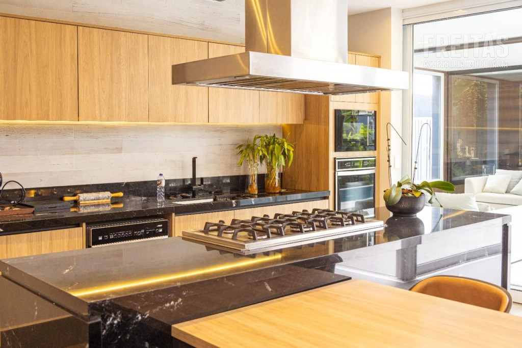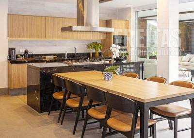 Cozinha com Área gourmet integrada com churrasqueira a carvão + churrasqueira a gás +