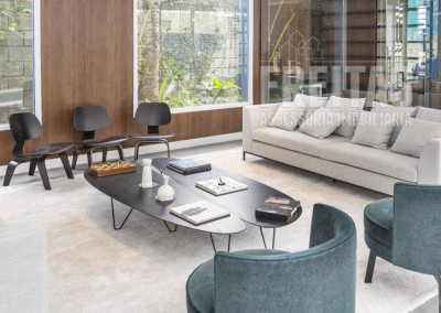 Sala de estar com adega de vidro (não climatizada porém com adega climatizada para 32 garrafas) - móveis Design da Vila