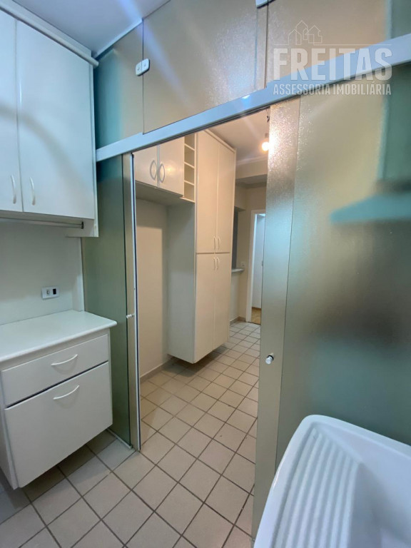 cozinha e lavandaria com armários e 2 banheiros com gabinetes
