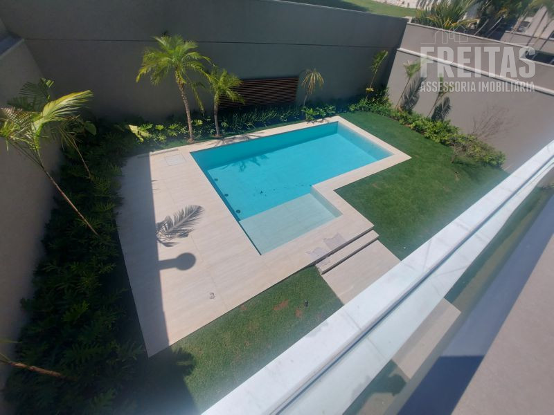 Sala de estar, jantar e home integrados ao jardim com piscina e espaço gourmet.