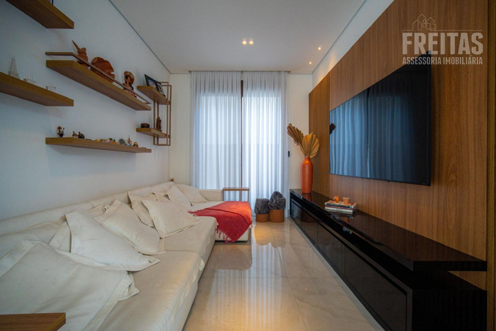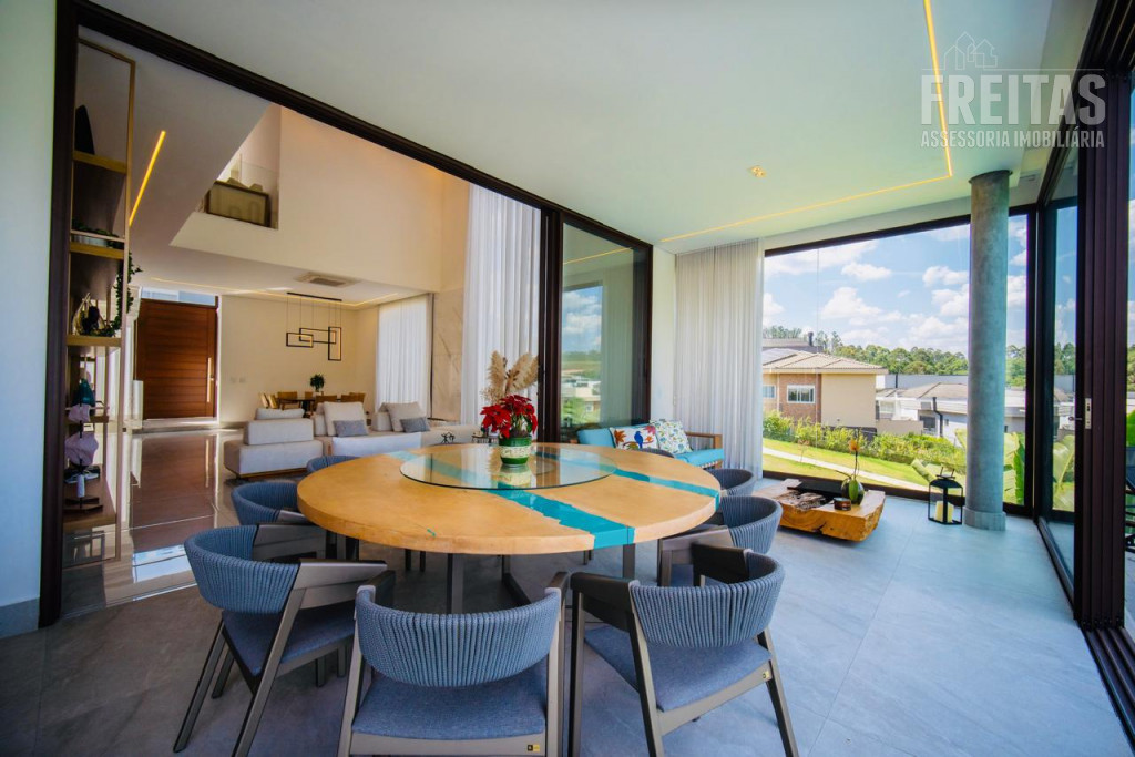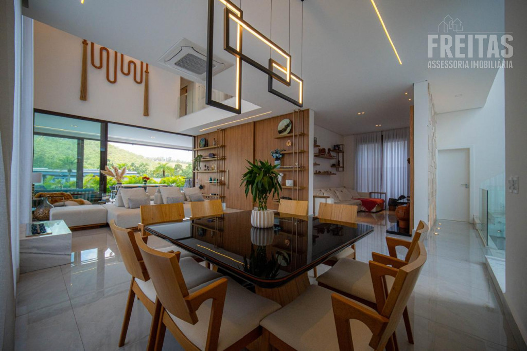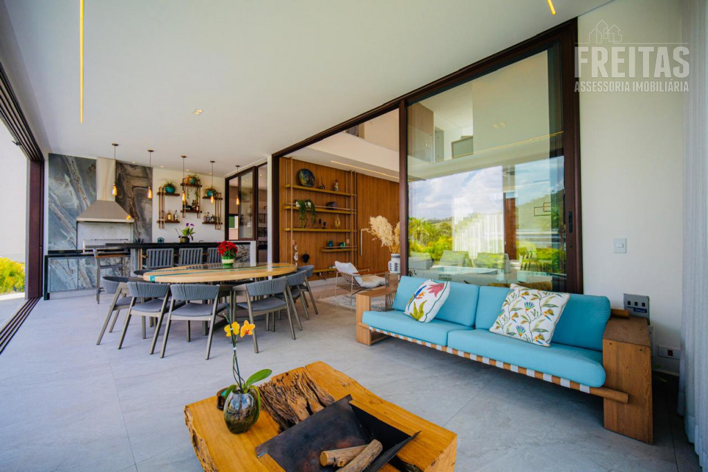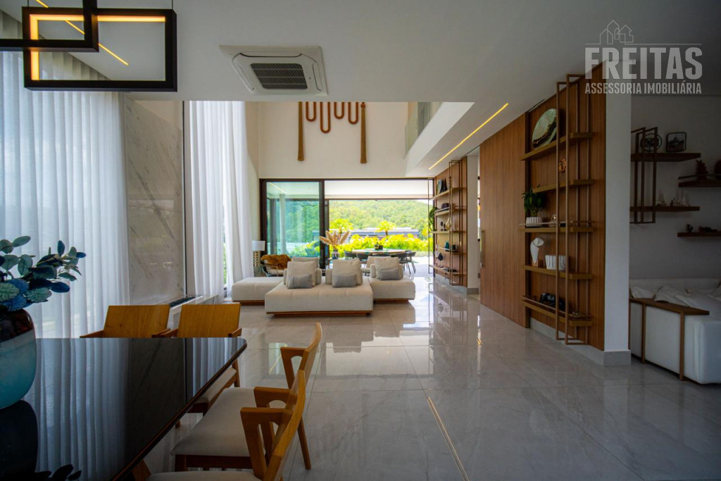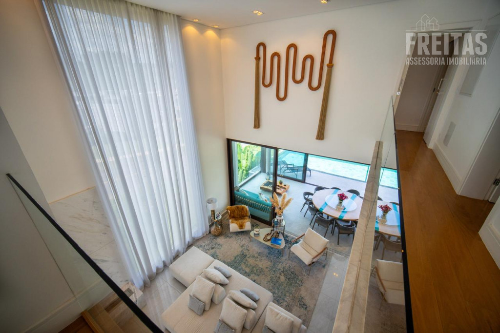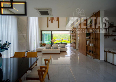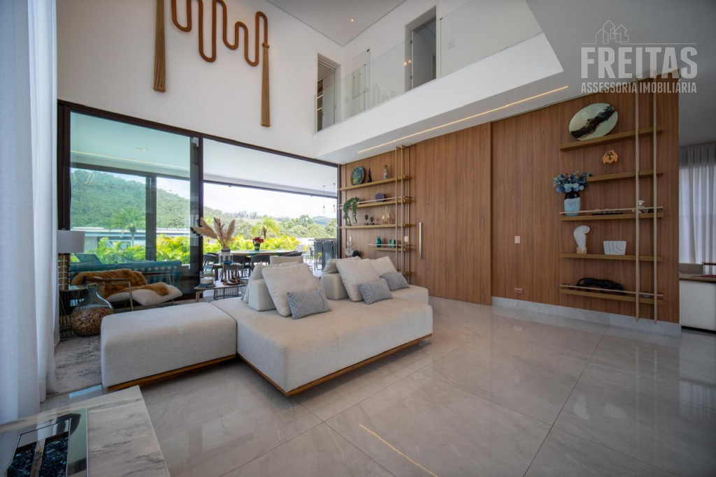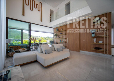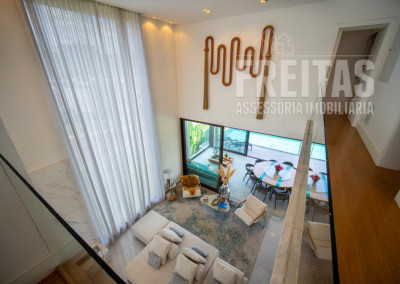 - Ampla sala para 3 ambientes com pé-direito duplo e lareira, com vista para área da Reserva