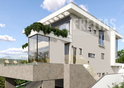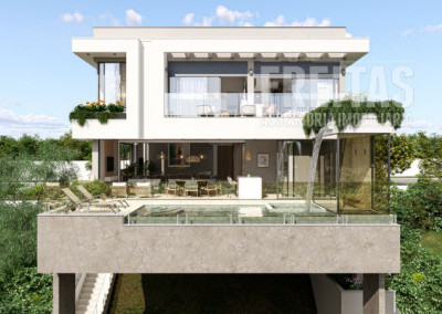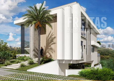 2) Construção: 456 m2 (área adicional de 80 m2 para futura expansão com fundos para a mata (academia, salão de festas etc.).3) 3 pisos (Inferior, Térreo e Superior)