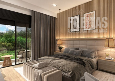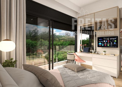 18) 1 das suite virada para a área de preservação (mata do condomínio), sem vizinho, 2 suítes com fundo para a mata.