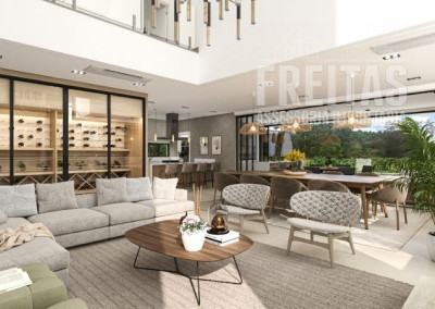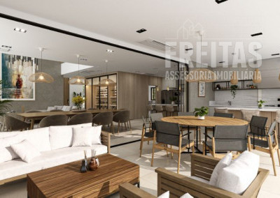 9) Living integrado com pé-direito duplo.
