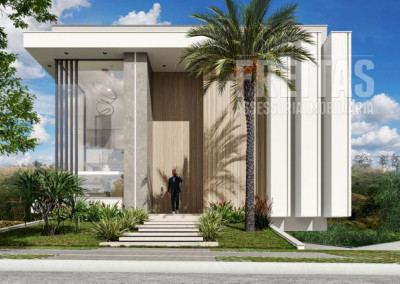 7) Ripados em alumínio na fachada (entrada da casa) cor Sand Ash.