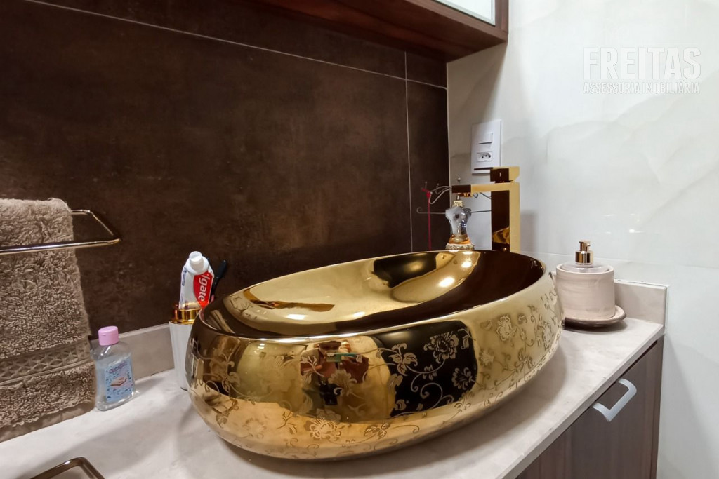 O apartamento é de alto padrão, cubas italianas, ferragens de banheiro importadas,