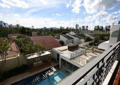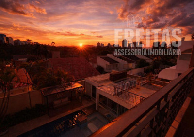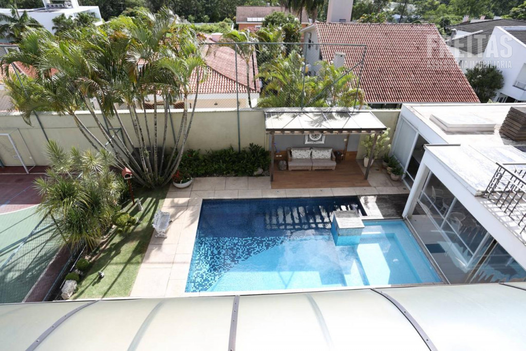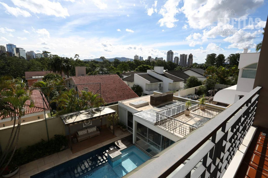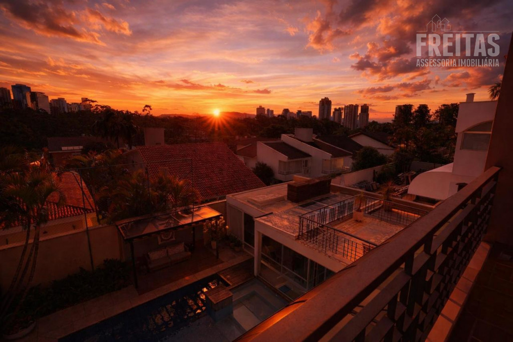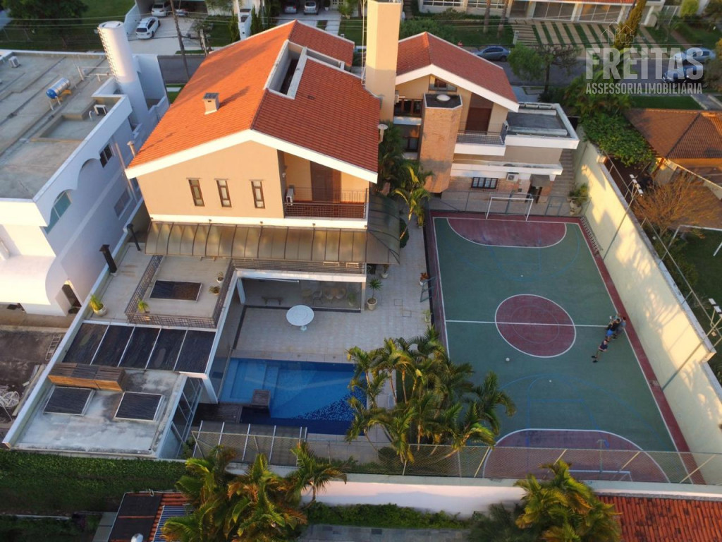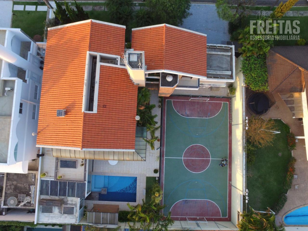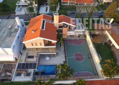 Casa de alto padrão construída em dois terrenos na rua bem-localizada em um dos mais nobres condomínios de Alphaville (Residencial 1), possui 5 suítes, sendo 1 master com dois closets, varanda com vista para o pôr do sol, amplo banheiro com grande hidromassagem e 2 chuveiros, 3 suítes com hidromassagem, e outra para hóspedes, bem isolada das demais e com acesso privativo por uma das entradas da casa, trazendo muita privacidade aos hóspedes e também aos moradores, contando com duas varandas para faces diferentes: uma para o nascer do sol, e outra para o pôr do sol, o que traz muita iluminação e ventilação a essa suíte especialmente encantadora.