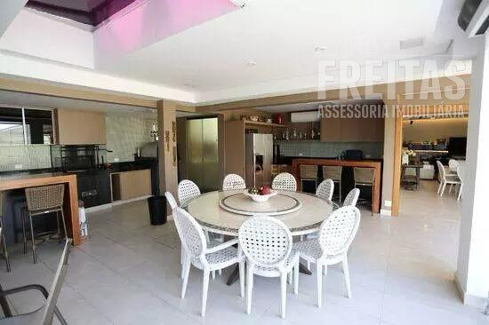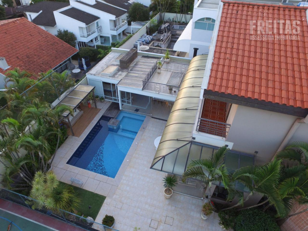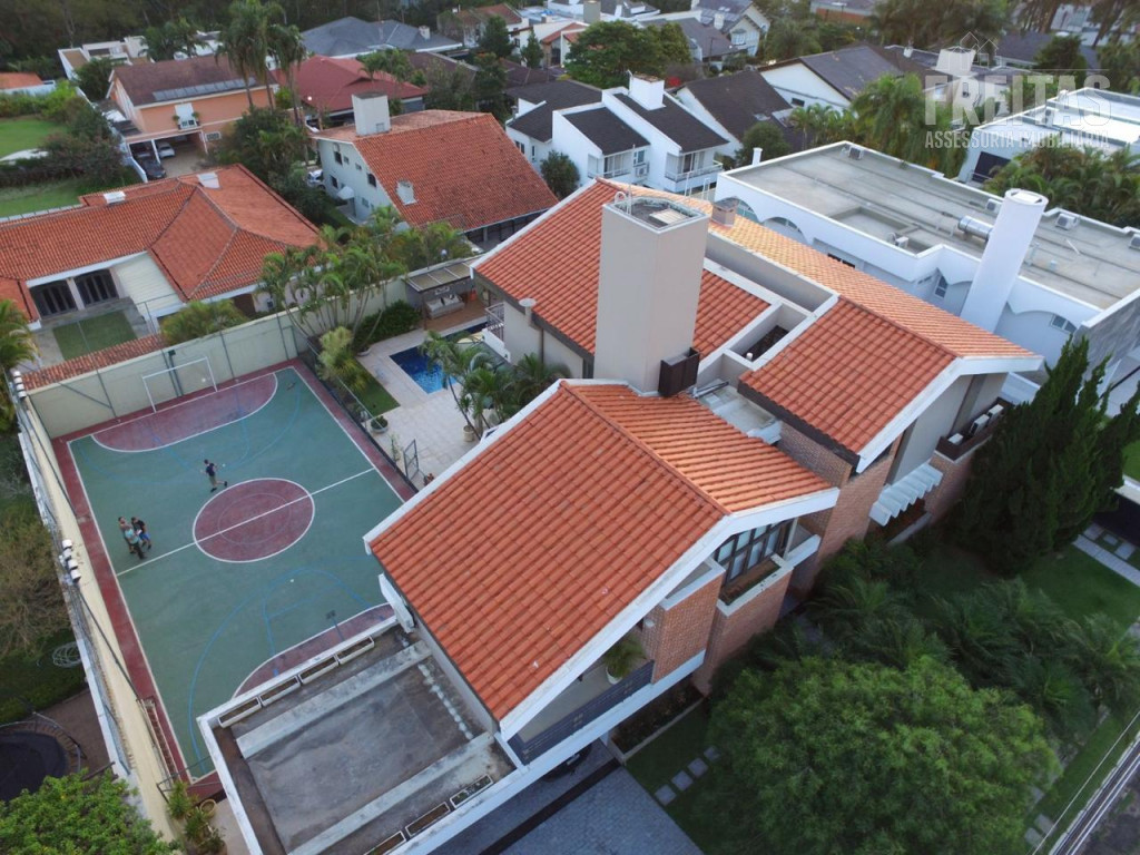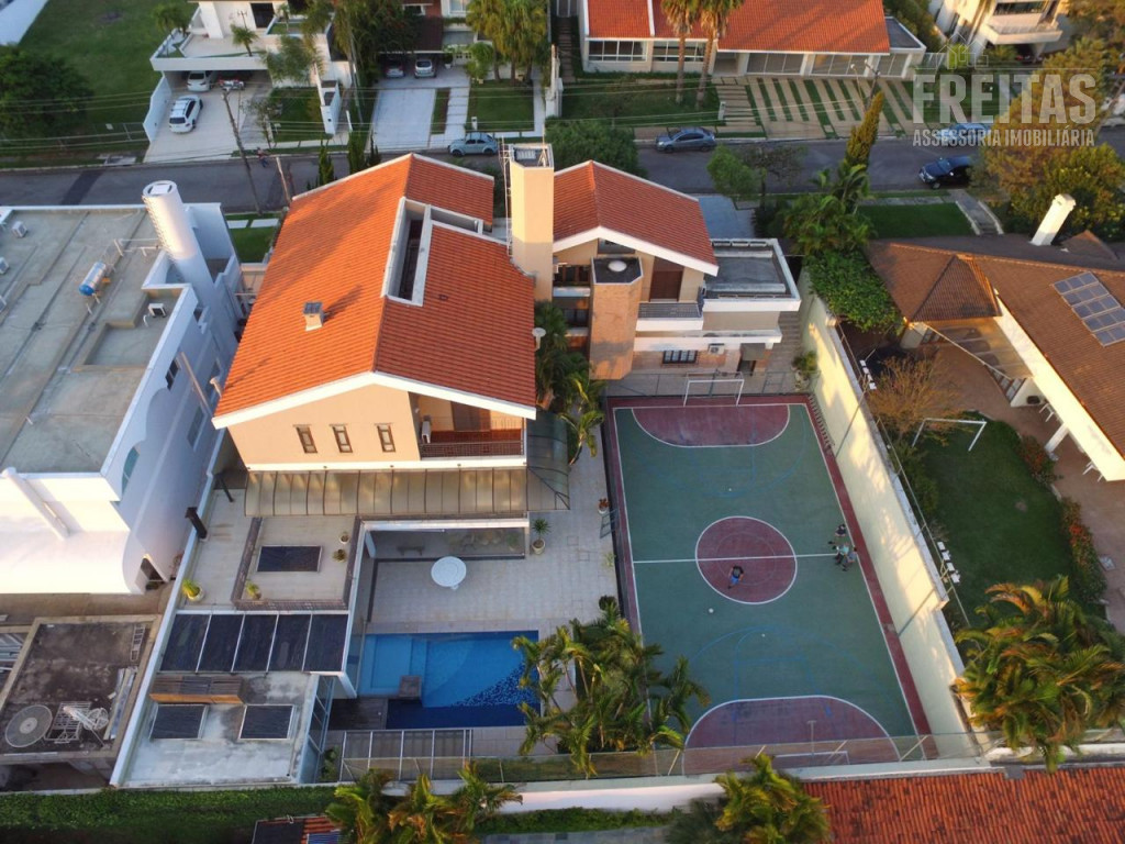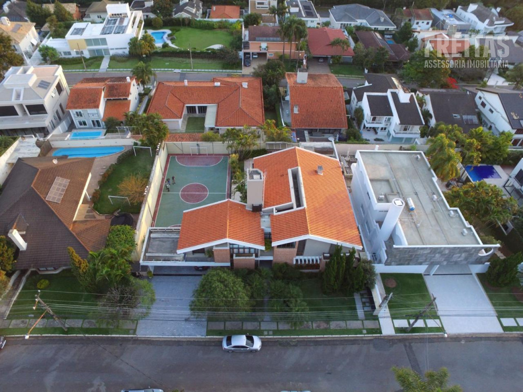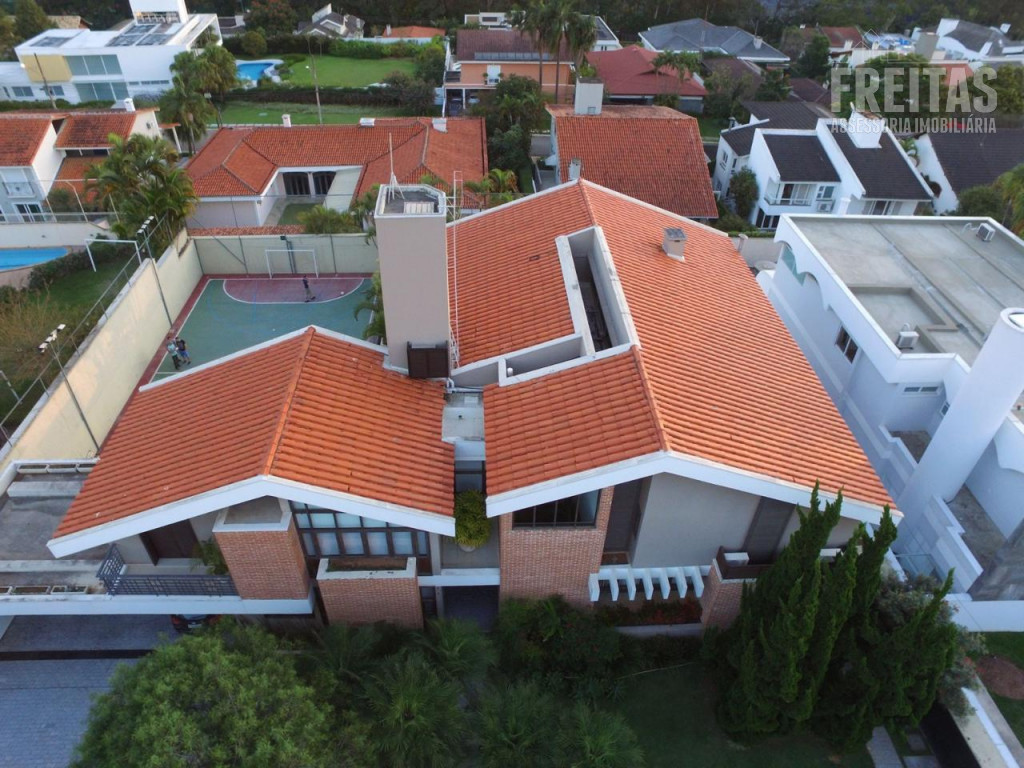 Casa de alto padrão construída em dois terrenos na rua bem-localizada em um dos mais nobres condomínios de Alphaville (Residencial 1), possui 5 suítes, sendo 1 master com dois closets, varanda com vista para o pôr do sol, amplo banheiro com grande hidromassagem e 2 chuveiros, 3 suítes com hidromassagem, e outra para hóspedes, bem isolada das demais e com acesso privativo por uma das entradas da casa, trazendo muita privacidade aos hóspedes e também aos moradores, contando com duas varandas para faces diferentes: uma para o nascer do sol, e outra para o pôr do sol, o que traz muita iluminação e ventilação a essa suíte especialmente encantadora.