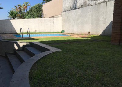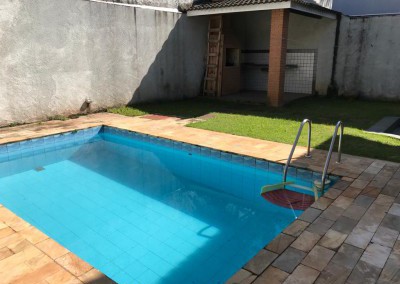 Quintal com churrasqueira e piscina