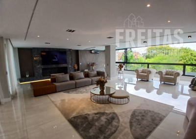 3 SALAS, LAVABO, SALA DE JANTAR, SALA DE ALMOÇO DESPENSA, COZINHA, ELEVADOR, VARANDA