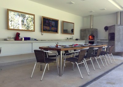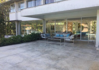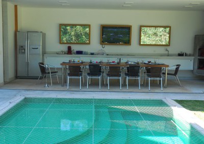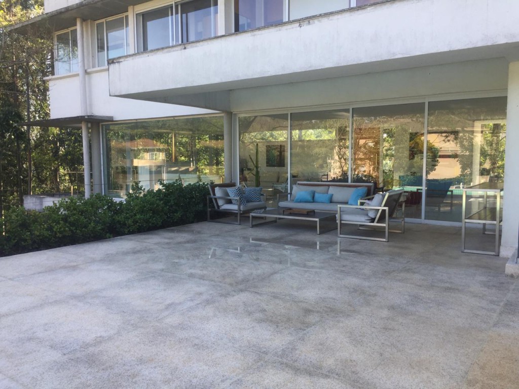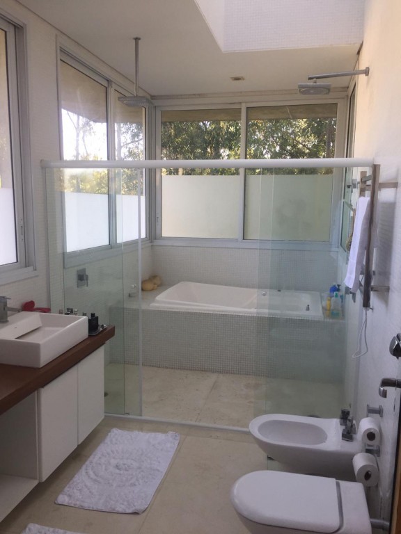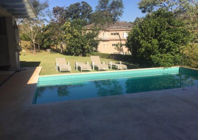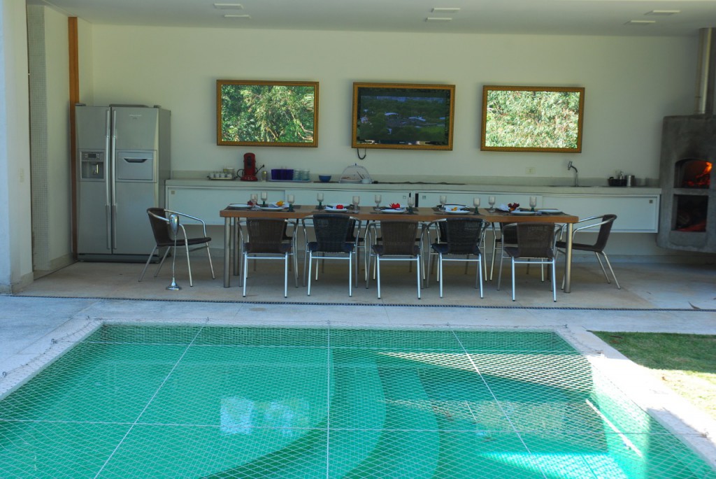 Piscina, sauna, home/sala intima, adega, depósito, e um quarto de empregados isolado da casa.